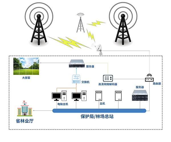 指揮中心:煙火識別預(yù)警系統(tǒng),AI識別煙火服務(wù)器,GIS輔助決策系統(tǒng)、中心儲存服務(wù)器,大屏幕等