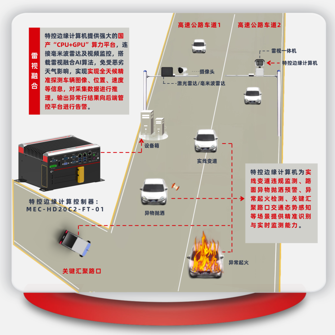 通過集成特控工控機(jī)、服務(wù)器等尖端硬件的新型智慧高速解決方案,我們不僅實(shí)現(xiàn)了收費(fèi)場(chǎng)景的極致協(xié)同,更將事故預(yù)警與快速處置能力推向了新的高度,為高速公路裝上了“智慧之眼”,實(shí)現(xiàn)實(shí)時(shí)監(jiān)測(cè)與精準(zhǔn)智能分析,極大地提升了高速公路的智能化、高效化與綠色化水平,為現(xiàn)代綜合交通運(yùn)輸體系的構(gòu)建提供了堅(jiān)實(shí)的支撐。